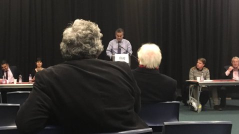 Cymdeithas’ meeting on the future of broadcasting in Wales at Chapter finishes early to allow participants to make it to the anti-Trump march being held in Cardiff city centre.