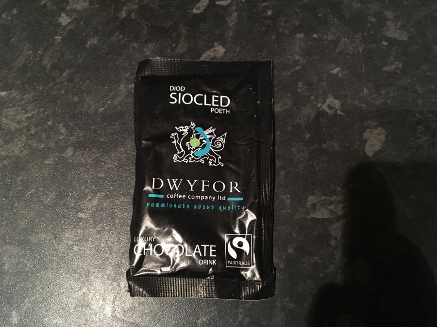 Cyfarfod Blynyddol Rhieni dros Addysg Gymraeg yng Nghasnewydd. Ar ôl ceisio tywallt te i fi fy hun ges i'r cyfle i ofyn i'r arbenigwr iaith Heini Gruffudd paham oedd e'n meddwl bod y paned yn blasu fel coffi: wnaethom sylweddoli fy mod i wedi tywallt coffi ar ben PG Tips.